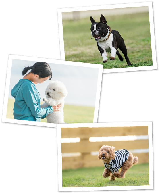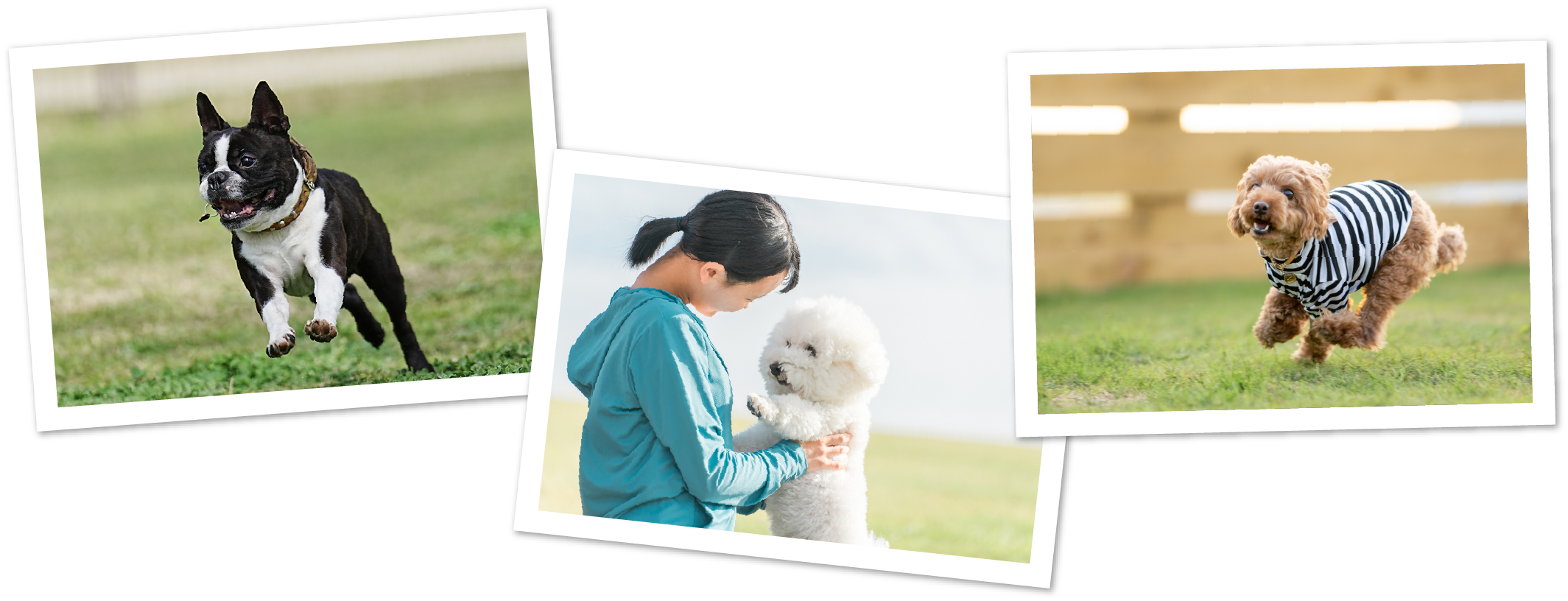 愛犬の健康維持やストレス解消はもちろん、飼い主様も緑に癒され、冷暖房のある休憩棟も完備しているためゆったりお過ごしいただけます。