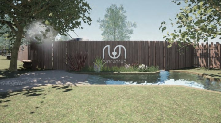 約750㎡の天然芝、直線距離45mを確保。小さめの循環式のプールと噴水(井戸水使用)があります。日陰のための高木にはミストが這わせてあり、暑い日には涼をとれるシステムも完備しております。