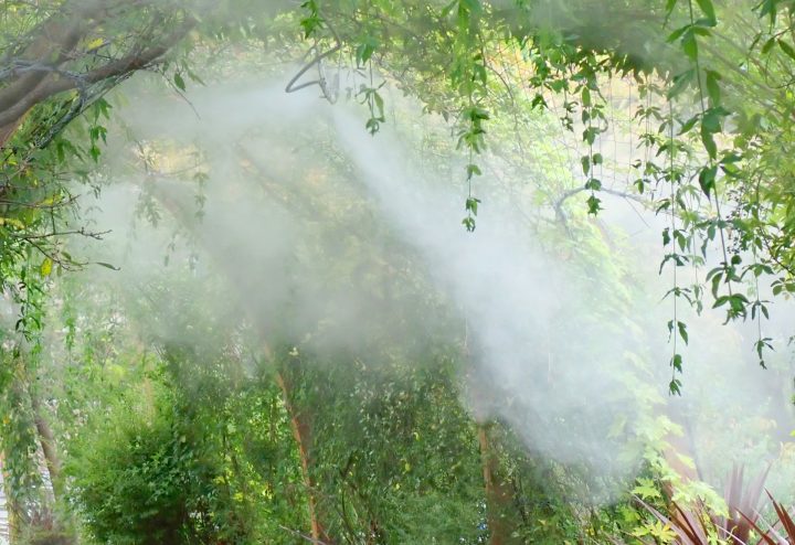 約130㎡の人工芝、小さめのプールと噴水を完備(井戸水使用。循環式ではありません)。日陰のための高木にはミストが這わせてあり、暑い日には涼をとれるシステムも完備しております。